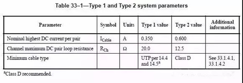 說明:Type 1 value和Type 2 value 分別指IEEE802.3af和IEEE802.3at的要求。