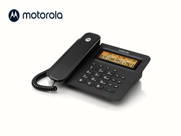 摩托羅拉CT260C電話機,有繩來電顯示電話,雙接口,橙色背光,1組鬧鐘,10組雙鍵撥號,5組黑名單,135組來電,16組去電,8組鈴聲,1組 VIP鈴聲,鈴聲和免提音量2級可調,鈴聲可調,一鍵靜音,通話音樂保留,語音報號,免打擾(30分鐘-24小時可設),免提,重撥,停電可撥打,配有堿性電池。